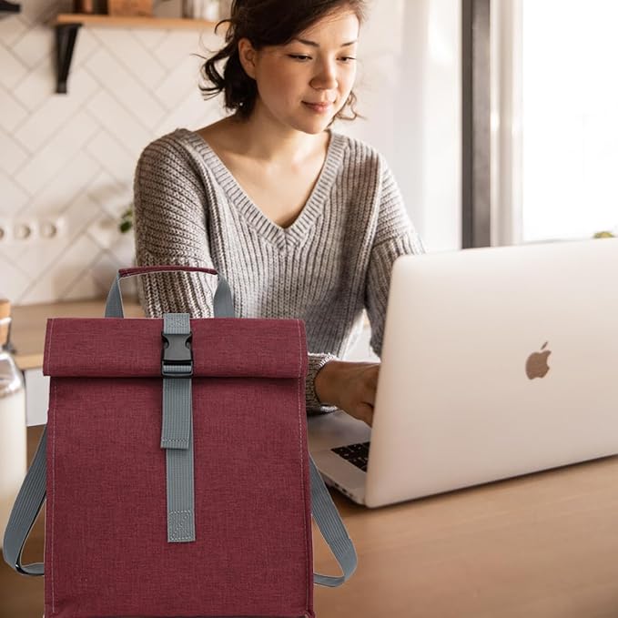 Insulated Lunch Bag for Men/Women/Kids, Roll top Reusable Lunch Box with Adjustable Shoulder Strap, Thermal Lunch Cooler Tote Container for Adults/Teens School Work Office Picnic,Red