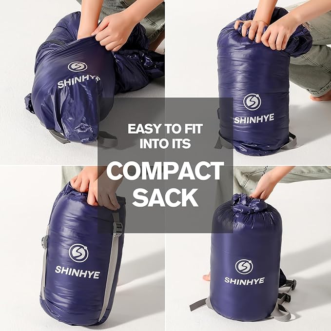 ShinHye Ultralight Sleeping Bag for Adults - 500g Premium Duck Down Waterproof & Compressible, 3 Season Backpacking Camping 40-59℉, Compact Lightweight Sleeping Bag with Compression Sack
