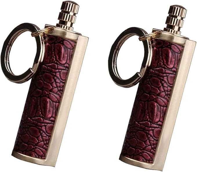 Fire Starter Lighter Waterproof Flint Match Outdoor Camping Permanent Metal Matchstick with Keychain(Sold Without Fluid) (Red+Red)