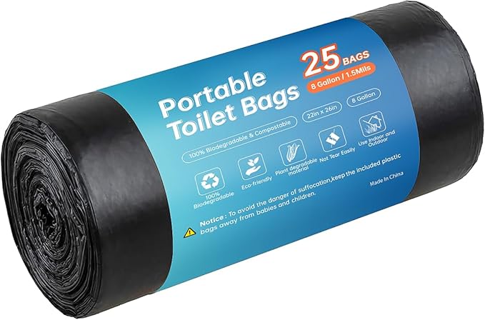 - 【Great Value】Our package includes 1 roll of 25 count camping toilet trash bags. For the same price, more quantity than other garbage bags on the market, allowing you to use them longer. Best of all, 1 toilet bag weighs 13 grams and 1 roll weighs 325.5 grams, which is thicker and tougher than other waste bags on the market. You will get more and better quality garbage bags for less money.