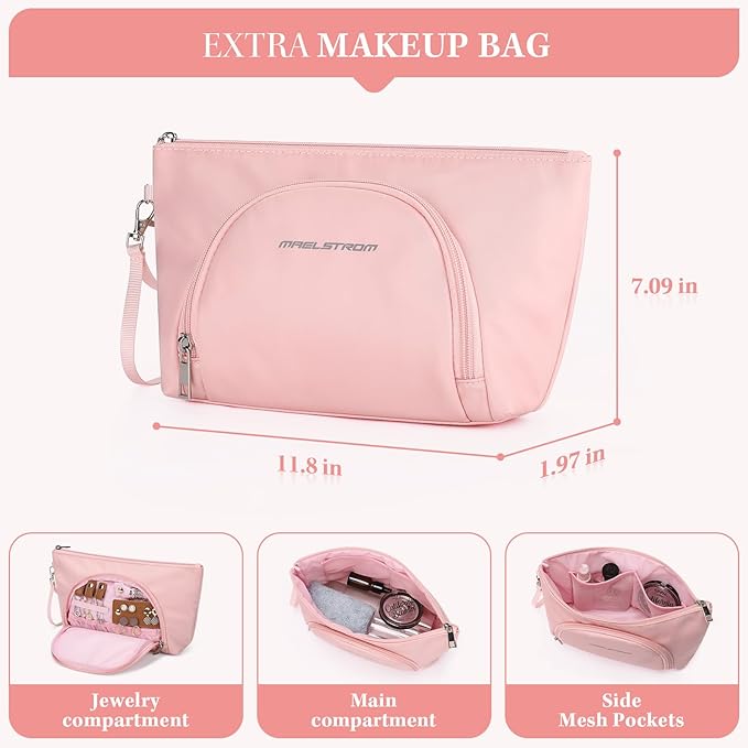 - Shoe Compartment and Cosmetic Bag: Keep shoes separate in the waterproof, easy-to-clean compartment with two ventilation ports. The roomy bottom section comfortably fits two pairs of shoes. The high-capacity cosmetic bag combines jewelry and cosmetic storage, ideal for travel and daily use.
