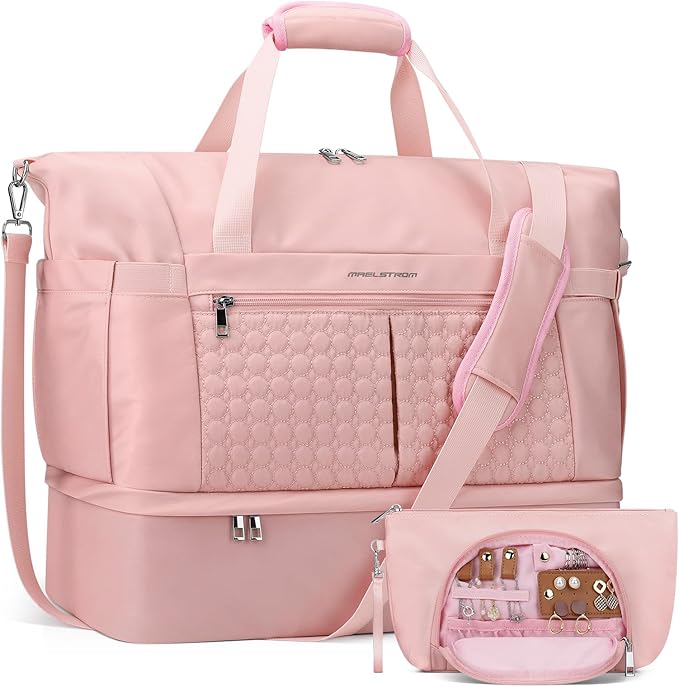 Maelstrom Gym Bag for Women,40L Travel Duffel Bag with Shoes Compartment and Wet Pocket,Waterproof Carry On Weekender Bag,Sport Gym Tote Bags Swimming Yoga, Hospital Holdalls-Pink