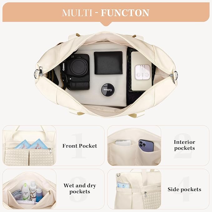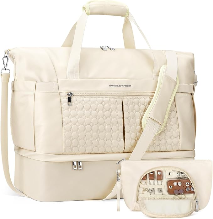 Maelstrom Gym Bag for Women,40L Travel Duffel Bag with Shoes Compartment and Wet Pocket,Waterproof Carry On Weekender Bag,Sport Gym Tote Bags Swimming Yoga, Hospital Holdalls-Beige