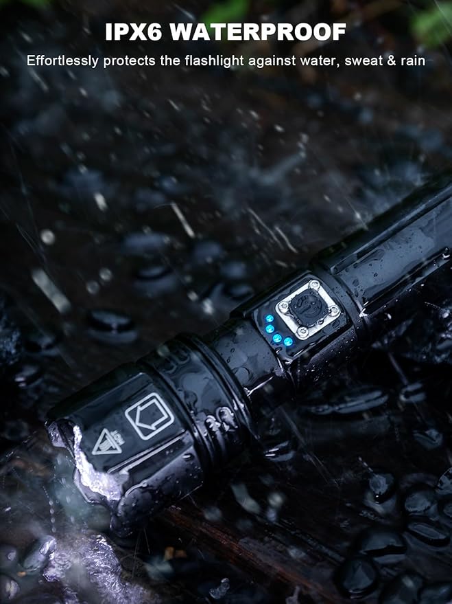 - 【Super Bright & Comfortable Experience】GOHOMAN super bright flashlight can achieve a maximum output of 900000 lumens, with constant brightness and no flicker, providing a comfortable visual experience. The LED flashlight has USB fast charging, IPX6 waterproof, and anti-drop function. simple use method, and is easy to carry.