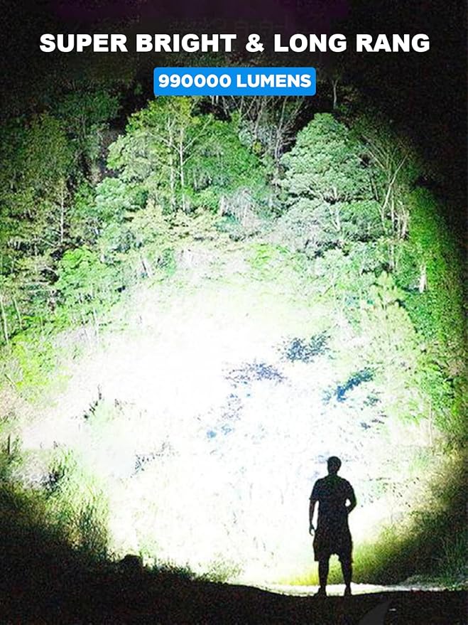 Flashlights High Lumen Rechargeable, 990,000 Lumens Super Bright LED Flashlight, High Powered Flash Light with 5000 mAh Capacity, Waterproof Handheld Flashlight for Camping Hiking(2 Pack)