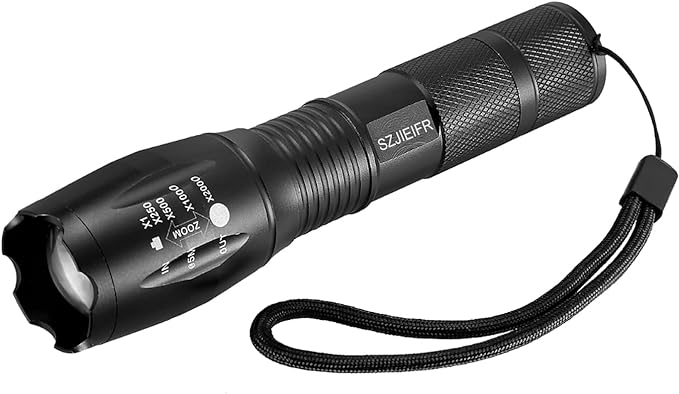 18650 Lightweight Flashlight Military Flashlight LED Pocket Flashlight Handheld Powerful Flashlight,5 Modes Zoomable, Aluminum Alloy,Waterproof for Home and Outdoor