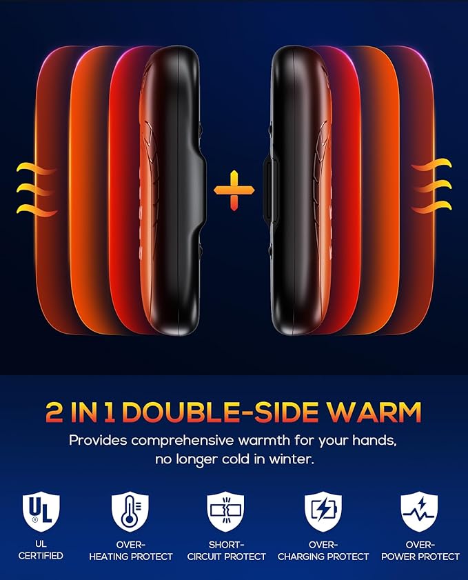 - 【High-Performance&Safety Certified】This hand warmer is made of advanced lithium batteries, aluminum, and ABS which are certificated with UL, CE, and FCC. The built-in intelligent protection system can provide protection against common problems such as power fluctuations, short circuits and overloads. It is flame-proof, explosion-proof and has no radiation, giving you peace of mind.