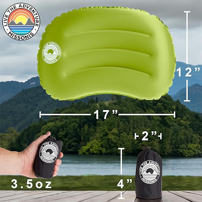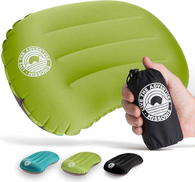 Inflatable Pillow for Camping - Lightweight, Compact, Compressible, Waterproof, Adjustable Firmness Camping pillow for Sleeping During Travel, Backpacking, Hiking, and Outdoor Adventure.