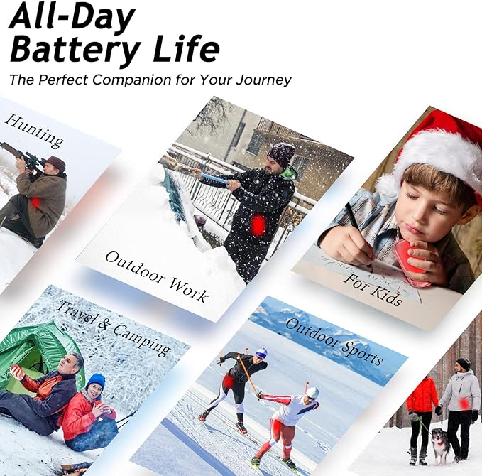 - 🔥LARGER HEATING AREA & DURABILITY: The hand warmers with a larger heating area makes every place warm; It can be taken with you when working outdoors in winter, walking the dog, traveling, camping, and hunting; This is what it gives more warmth