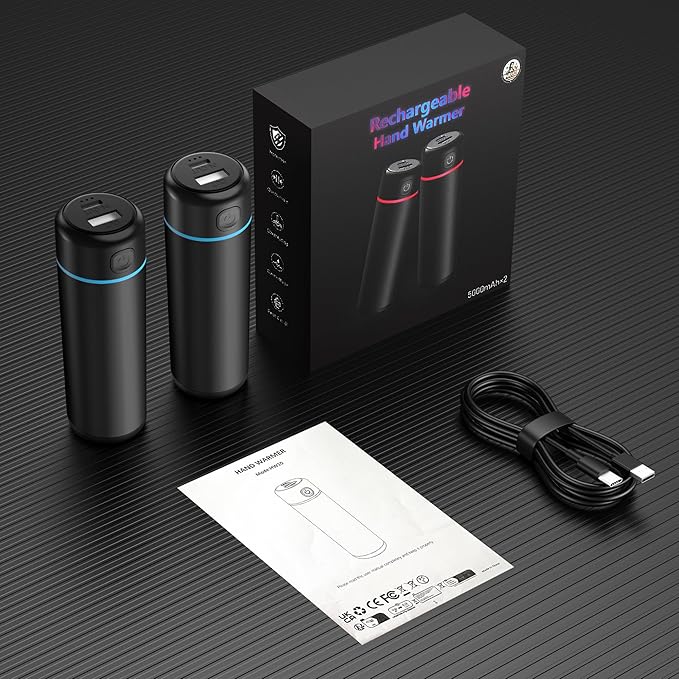 - Heating and Charging: Our Hand Warmers Rechargeable warms and recharge in one sleek, stylish package with a compact, comfortable grip that reduces heat loss; Weighing only 6 ounces individually, convenient to use