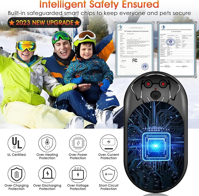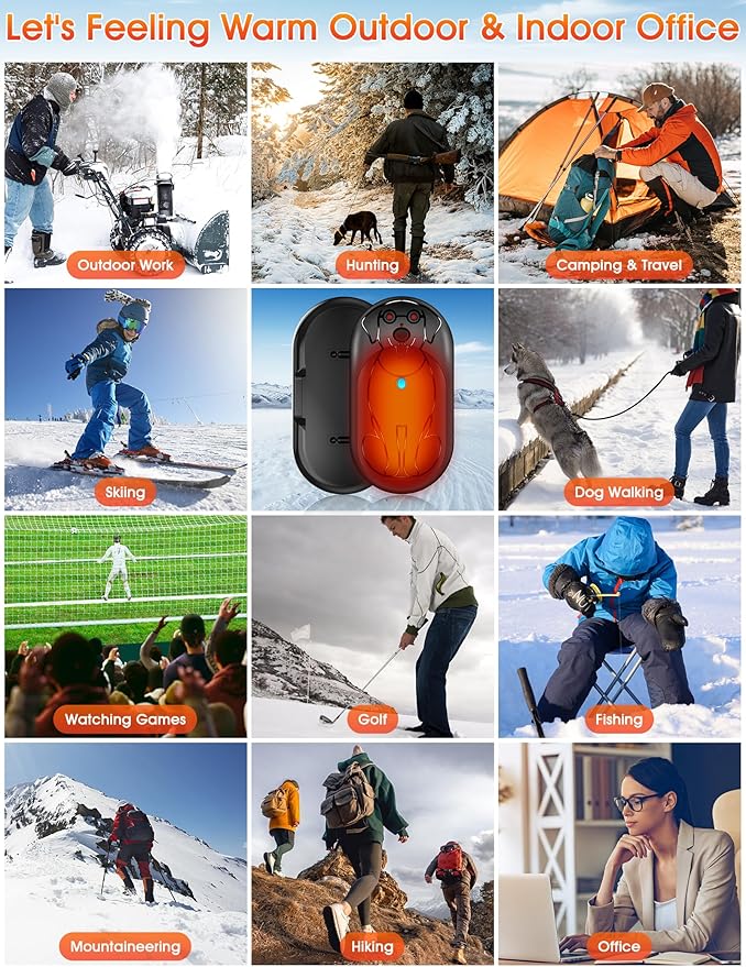 - 🔥【 Upgraded 3000mAh*2 Capacity & 2S Quick Heating】Ready to use, no long wait, anytime, anywhere to warm you all day long. Built-in intelligent circuit protection system with power-on, short circuit, and overload protection. Made of high-tech aviation-grade aluminum ABS material, shockproof, explosion-proof, anti-scald, and no radiation. Portable pocket hands warmer fit for outdoor sports, dog walking, travel, football, hunting, golf, fishing, hiking, camping, skiing, office, etc.