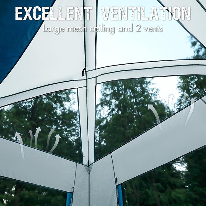- Weatherproof Construction: The tent is made of high-quality polyester fabric with a PU 2000mm water-resistant coating to block rain. Its sturdy poles provide stability on windy days.