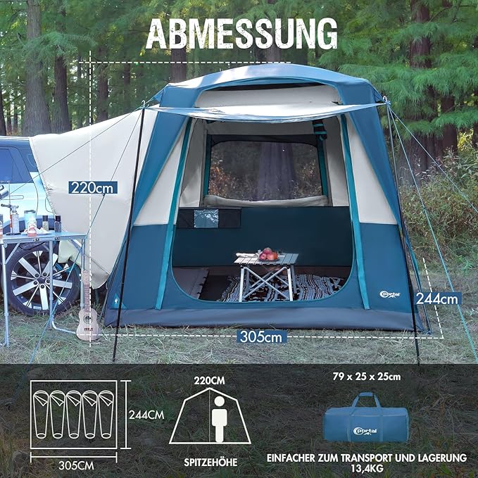 Portal 5-Person SUV Tent with Porch, 2-in-1 Car Camping Tent, Water-Resistant & Windproof, Trunk Tent with 2 Doors for Travel & Outdoor Adventures