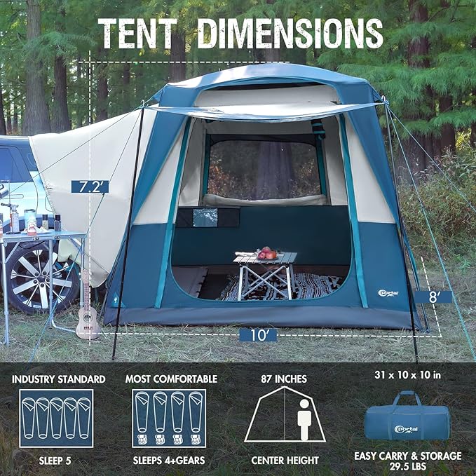 - Spacious Space: The SUV tent is spaciously designed and measures 10*8*7.2ft. You can stand fully inside the tent without any oppression.The wide porch offers extra relaxation space and sun protection.