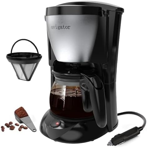 - Quick Brewing & Safe Using: Pressing the switch button, experience the fast heating technology of Avigator 12V car coffee maker, a piping-hot cup coffee can be brew in short time; 5-Hole Sprinkler System mimics hand-pouring for even water distribution, creating consistently rich and flavorful brews; What's more, the built-in auto shut-off feature guarantees your safety by turning off the coffee machine after each brew