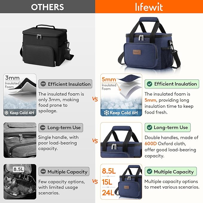Lifewit Large Lunch Bag Insulated Lunch Box Soft Cooler Cooling Tote for Adult Men Women, Dark Blue 12-Can (9L)