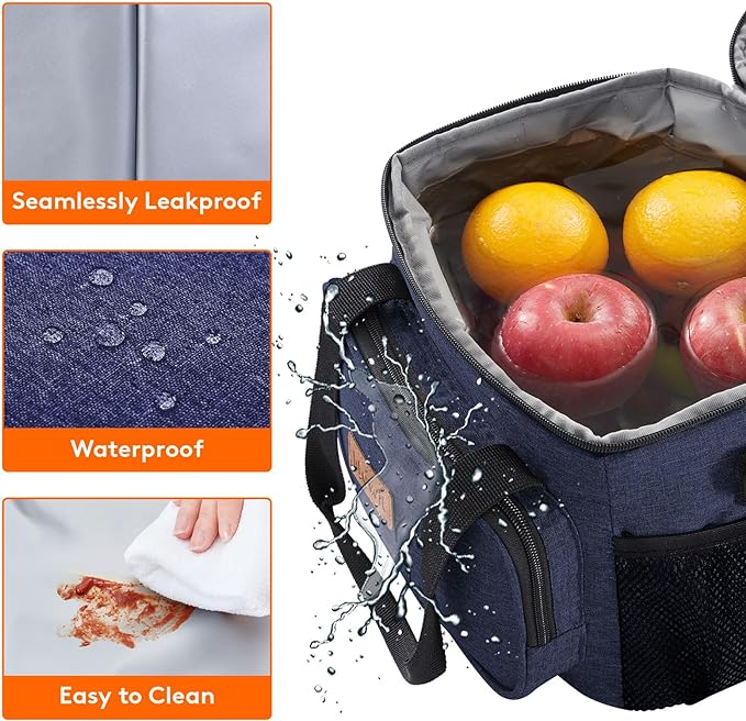 - Leakproof & Waterproof: The exterior of lunch box for men is constructed out of 600D water-resistant dirt-proof Oxford fabric for durability and water proofing and easy cleaning. Even when full with water and ice, it holds fruits and drinks well, will not leak at all.