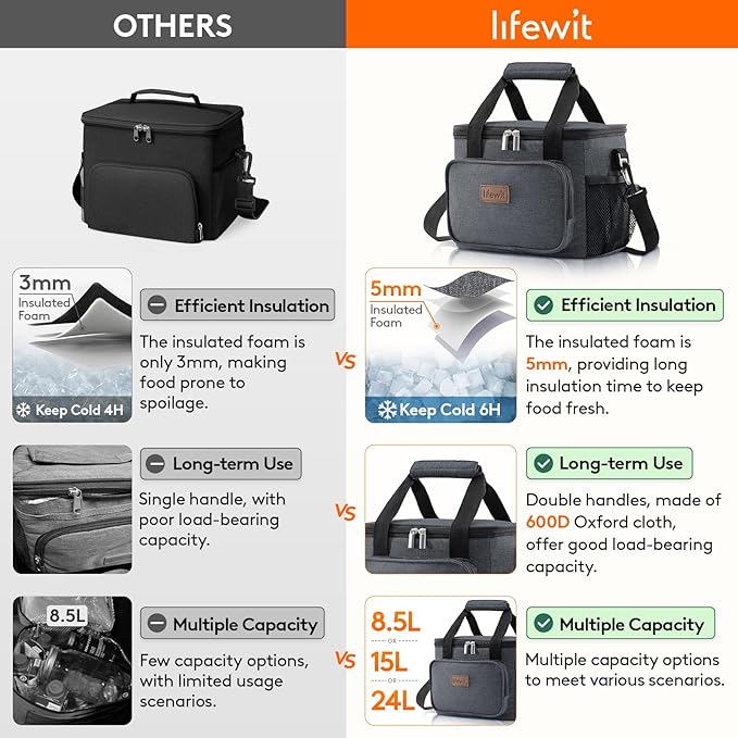 Lifewit Large Lunch Bag Insulated Lunch Box Soft Cooler Cooling Tote for Adult Men Women, Dark Gray 12-Can (9L)