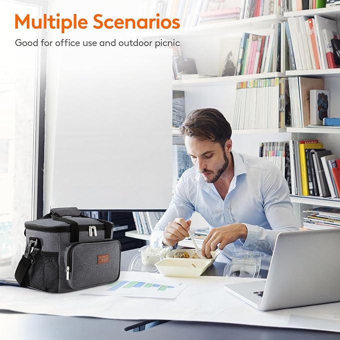 - Convenient & Portable: The lid of this cooler lunch bag can be opened up widely with strong two-way zippers, which means you can put your lunch container into the bag and take out of the bag vertically. Prevent liquids from leaking out of the container and soiling inside the bag. Tough handles and shoulder girdle allows you to carry it easily. Moreover, the front and side extra pocket can hold small items like keys and earbuds.