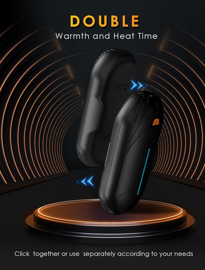 - 2 IN 1, DOUBLE WARMTH- Superior to the old one, the 2-in-1 hand warmers can be used in combination or separately according to needs. Combined, you can enjoy all-around warmth from palms to fingertips. Used separately, can warm your hands at the same time.