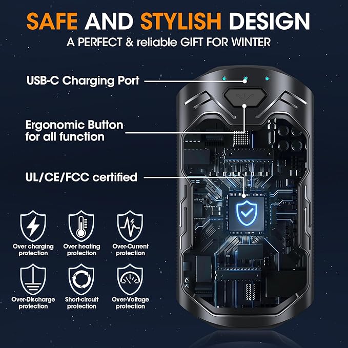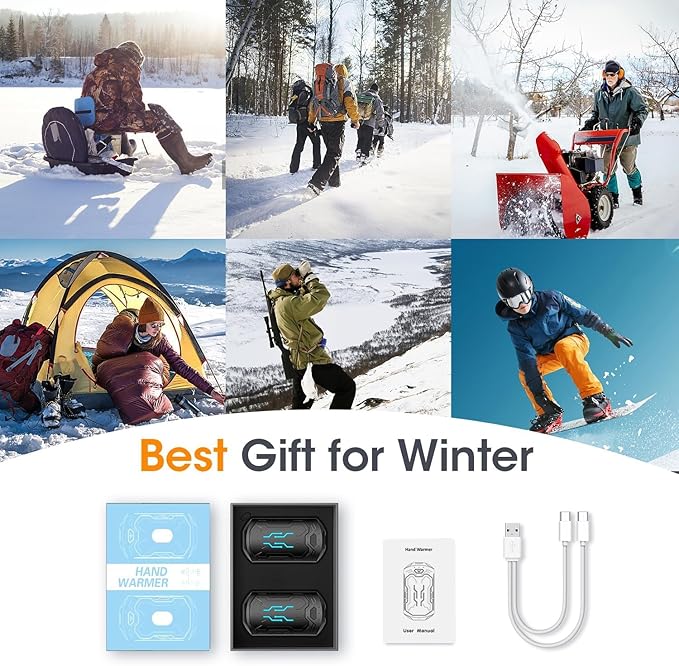 - 【Safety Certified & Premium Quality】Certificated with UL, CE, and FCC.The 2023 upgraded portable handwarmers have multiple protection technologies and built-in UL certified batteries. Hand warmers are made of high-tech aviation-grade aluminum and ABS material, thousands of polished exterior materials, easy to hold, warm and smooth, portable and compact, bringing warmth all day long.Making you and your loved ones safer and warmer.