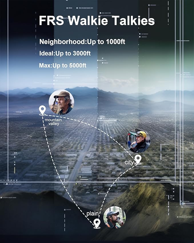 - 🎄🎁【Long Range】Adopt gain antenna, stronger penetration and lossless transmission technology. Within the city, the long range walkie talkies can reach a communication range of 1000ft and talk clearly. In open areas, the walkie talkies can communicate up to 5000ft.