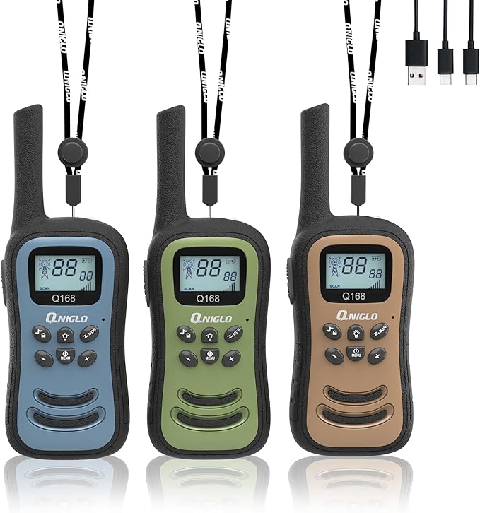 - 🎄🎁【Perfect Gift for All Ages】Qniglo walkie talkies for kids long range make more fun for your communication with your kids, friends, and parents. Kids walkie talkies will be the best choice for birthday, children's day, father's day and Christmas gifts. Be ready for outdoor life, hiking, camping, hunting, skiing, and cycling, and always stay in touch.