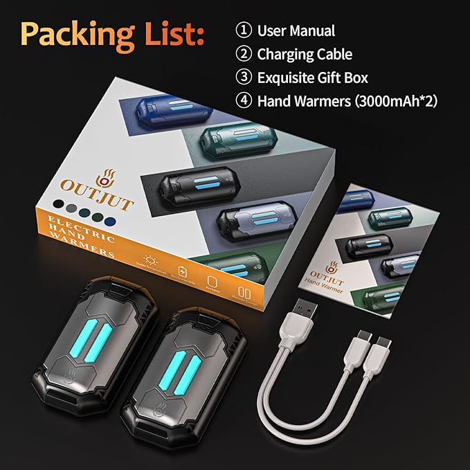 - 【Perfect Gift for Family and Friends】Our OUTJUT portable hand warmer perfectly combines fast heating, long-lasting warmth and stylish design, it is a good choice for winter activities and keeping warm in cold weather. If you like camping, hiking, skiing or other outdoor sports, it is a good helper for you. It's also great for people with Raynaud's disease or cold hands. OUTJUT hand warmer rechargeable will be a thoughtful gift.