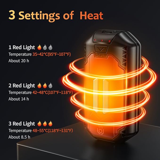 - 【Rapid Heating in 2 Seconds and 3 Heating Modes】Fingers are no longer cold and the waiting time is no longer long. These rechargeable hand warmers heat up to 130°F in just 2 seconds. It offers three temperature levels for stable, adjustable and precise comfort heating. Get rid of the cold quickly and experience the effects of heat therapy.