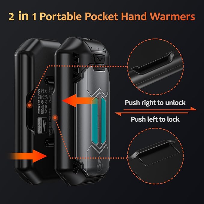 - 【2-Pack Portable Hand Warmers】OUTJUT 2-in-1 hand warmers with snap-on design can be used individually to warm hands at the same time, or combined into one for easy portability. The portable design is ideal for hunters, hikers, campers and those who work in cold environments or suffer from Raynaud's arthritis.