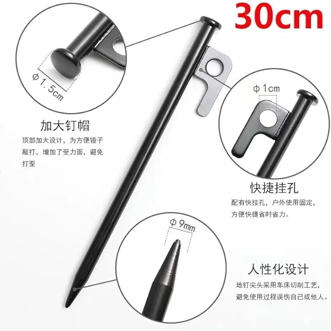 - Easy to Use:The tent spikes are suitable for all kinds of grounds,The camping stakes are very sturdy, keeping your tent secure all day and night,Our no-nonsense installation process only requires a hammer and just one person to set it up,which greatly improve your efficiency, saving time and effort