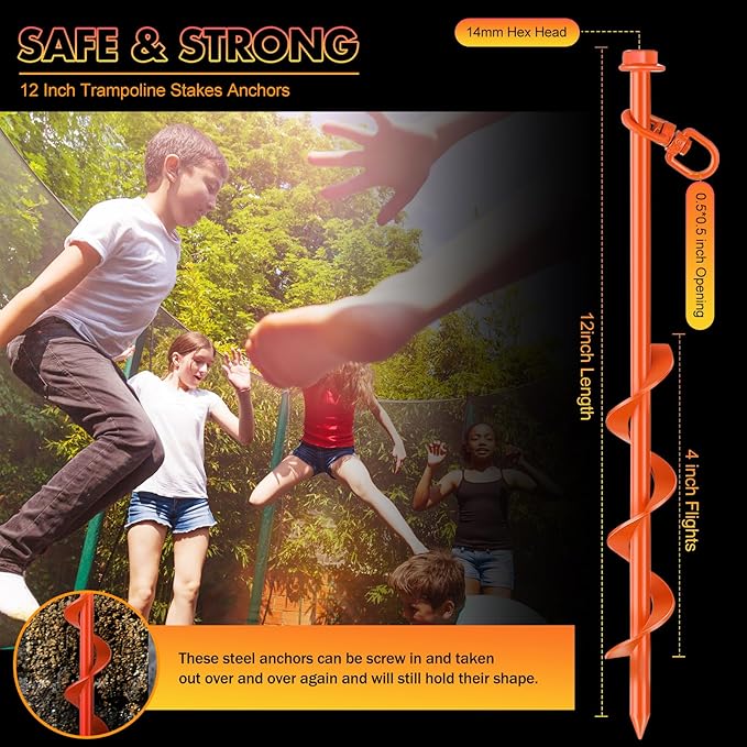 - Size Information: trampoline anchors measure about 30 x 3 cm/ 12 x 1.2 inches, long enough so that you can