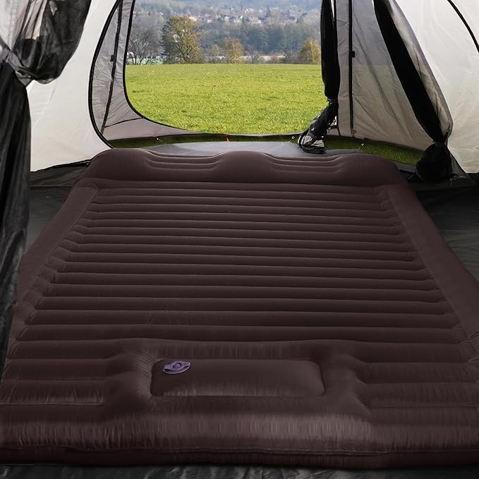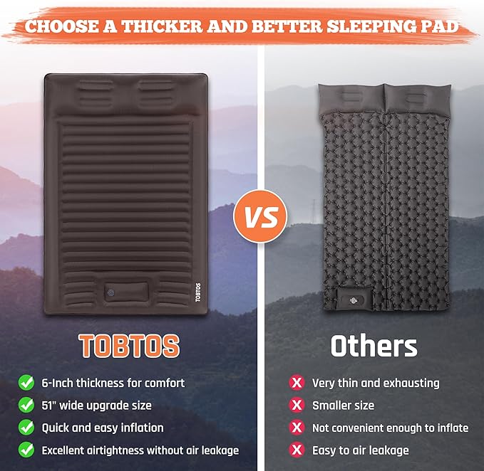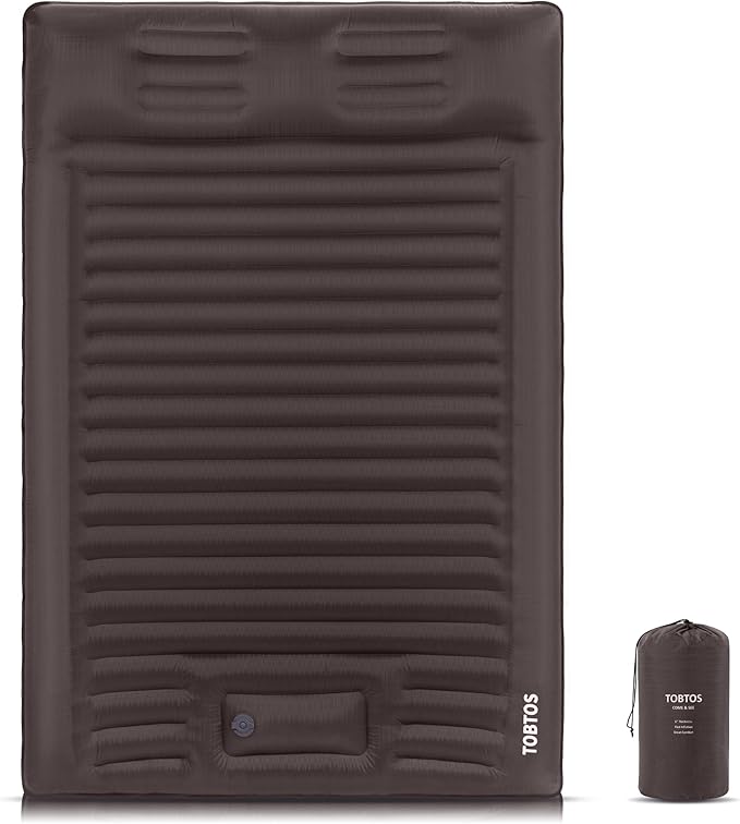 TOBTOS Double Sleeping Pad for Camping, Extra Thick 6" Camping Mattress 2 Person with Pillow Built-in Foot Pump, Inflatable Sleeping Mat for Camping, Backpacking, Hiking, Traveling(Brown)