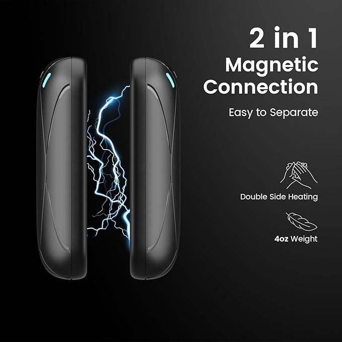 - 2 in 1 Magnetic Design: Strong magnetic force is connected together to form a single hand warmer, which can be easily separated into two hand warmers when needed, and can warm your hands at the same time. Magnetic design is more firm and not easy to lose.