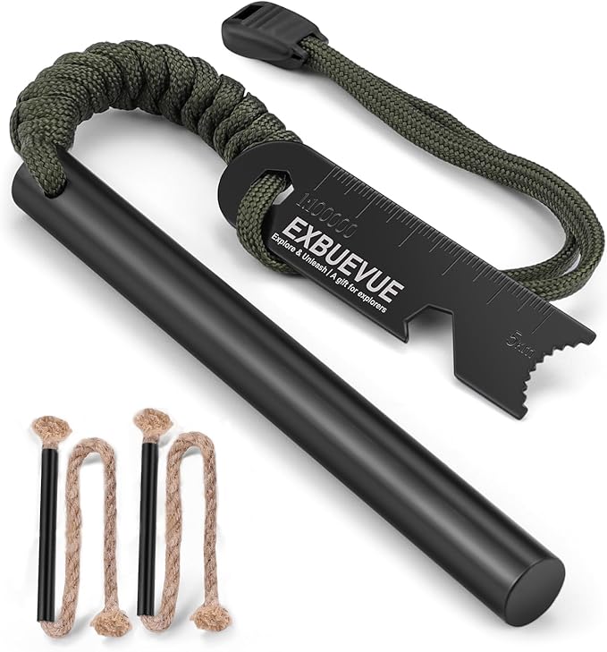 - Included Components : Paracord, Magnesium rod, Waterproof Tinder Wick Rope, Steel scraper