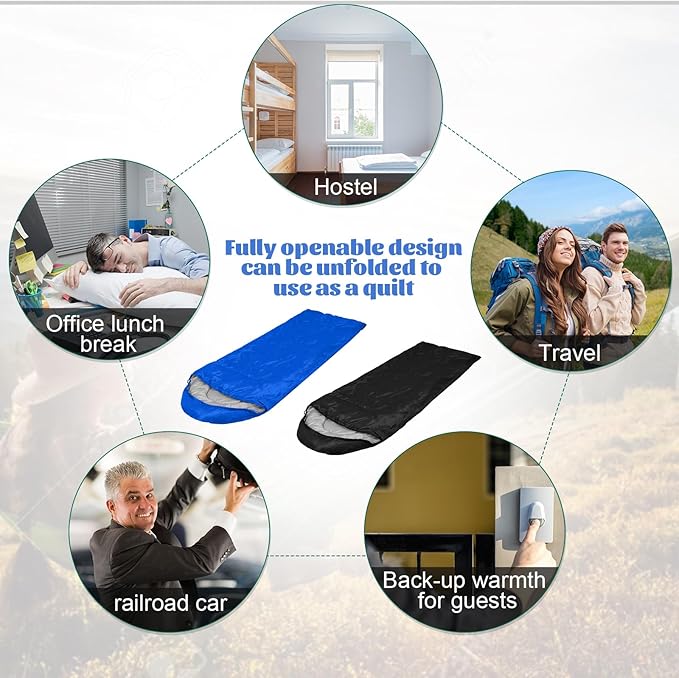 - Suitable for 4 Seasons and Warm or Cold Weather: our adult sleeping bags can keep warm in various outdoor activities in spring, summer, autumn, and winter; They are weather resistant design to keep you warm even in extreme conditions and prevent you from any dampness, you can get the comfortable sleep you need after a day of adventurous outdoor camping, backpacking, hiking, or travel