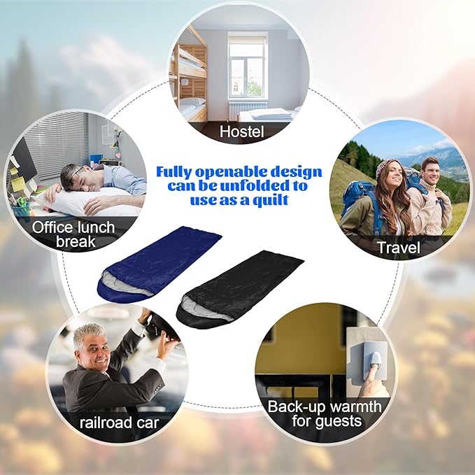 - Lightweight and Portable: each adult sleeping bag weight around 2 pounds, come with a compression sack, lightweight and easy to carry around. Roll control design makes folding quick and convenient to storage, saving you more time, suitable for indoor and outdoor use