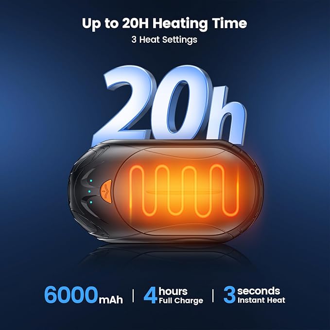 - 【Hand Warmers with Long Battery Life】Hand warmers rechargeable 2 pack with 6000mAh,a single full charge will up to 20 hours of use,2-in-1 large battery capacity electric hand warmers can meet the needs of one day's use,no longer afraid of the cold of winter.