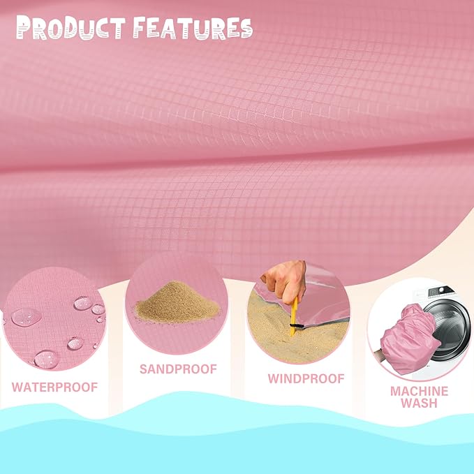 - 🌊BIG BEACH BLANKET:Durable and fast drying,can also be used as a canopy,sunshade,tent,toddler crawling mat,picnic mat,first aid mat,better professional fabric sewing without irritating the skin,providing you a good sense of use.