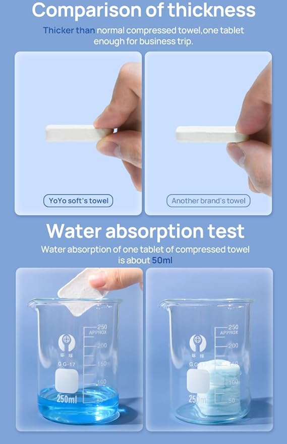 - 【Strong Absorption】Although compressed, it still has excellent water absorption ability, can quickly absorb the water on your face, reusable, and can be utilized twice after washing your face to meet your different needs.