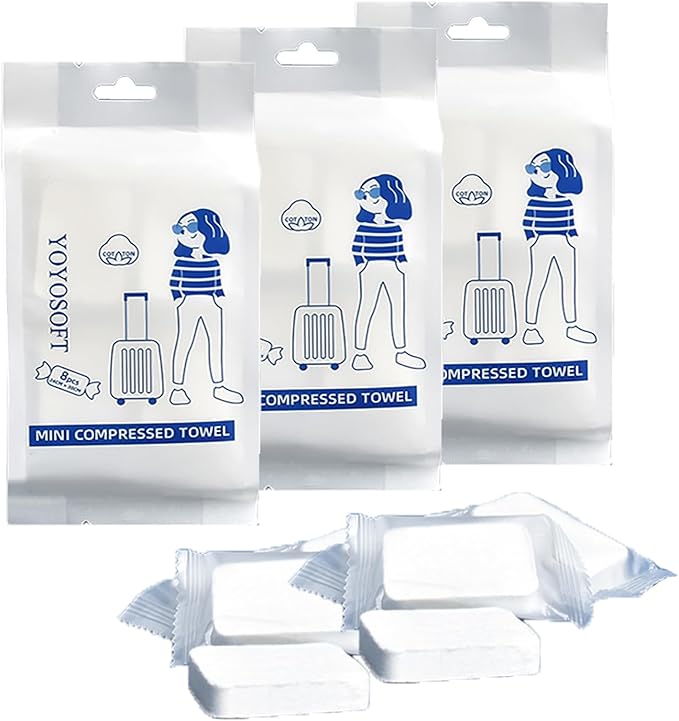 - 【Quantity, size】8 grains/pack, 24 grains in total, after compression treatment, reduce the volume of each piece to 1.1 x 1.57 inches, when you need to use, water quickly expand 3 seconds instantaneous suction into a large towel of 9.9 x 11.8 inches.