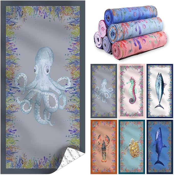 Microfiber Beach Towel Quick Dry Sandproof Compact Sand Free Soft Long Lightweight Sandless Fast Drying No Sand Repellent Foldable Micro Fiber Clearance Over Lounge Chair Cover Chair Two Side Octopus