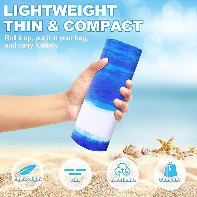 - 【Lightweight & compact】: Our microfiber beach towel is incredibly lightweight and compact, making it easy to pack and carry in a beach bag, backpack, or suitcase. It won't take up too much space or add any excess weight to your luggage.
