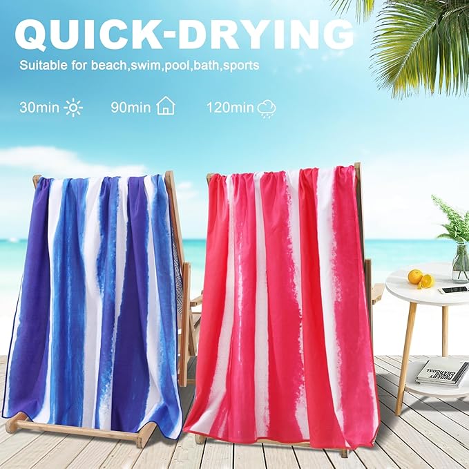 2 Pack Microfiber Oversized Beach Towel Lightweight Thin Sandproof Compact Quick Dry Clearance Towels Extra Large Sand Free Pool Travel Beach Essentials Accessories Women Men Adult Gift Pink Stripe