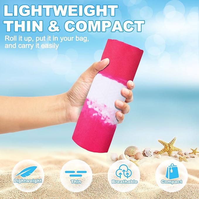 - 【Lightweight & compact】: Our microfiber beach towel is incredibly lightweight and compact, making it easy to pack and carry in a beach bag, backpack, or suitcase. It won't take up too much space or add any excess weight to your luggage.