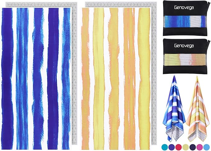 2 Pack Microfiber Oversized Beach Towel Lightweight Thin Sandproof Compact Quick Dry Clearance Towels Extra Large Sand Free Pool Travel Beach Essentials Accessories Women Men Adult Gift Yellow Stripe