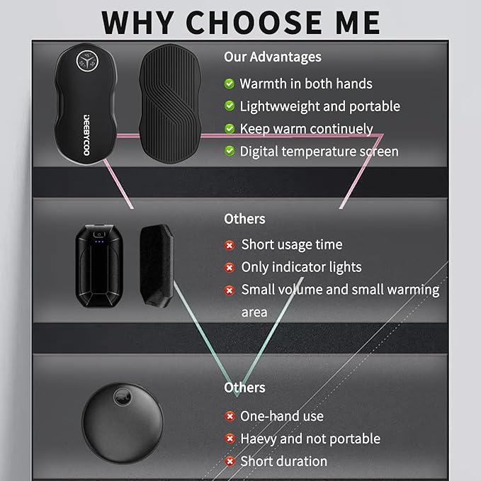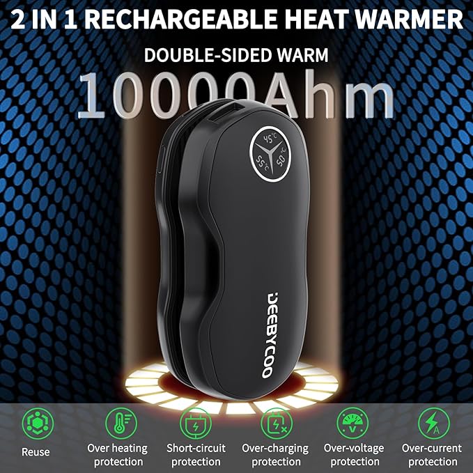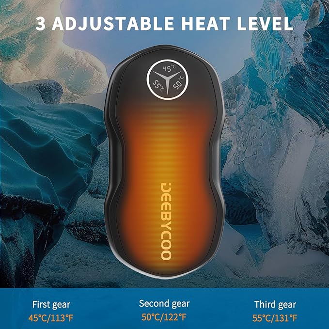 - 【Stable and Instant Heat】No more long waits for electric hand warmers with the Advanced Chip Control System. Dual-sided heating with operating temperatures up to 131°F/55°C and 3-second quick heat-up.3 adjustable temperature settings for precise and stable comfort temperatures. Our products are equipped with an NTC overheat protection device, which prevents the temperature from getting too high.