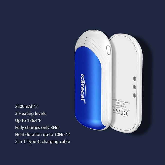 Karecel Hand Warmers Rechargeable 2 Pack, 5000mAh Hot Electric 2 in 1 Hand Warmer Portable Pocket Heater Reusable Handwarmers, Best Electronic Gifts for Men Women Kids, Hunting, Golf, CampingB0CGRHZPQW