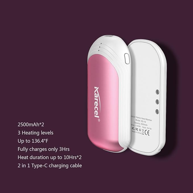 Karecel Hand Warmers Rechargeable 2 Pack, 5000mAh Hot Electric 2 in 1 Hand Warmer Portable Pocket Heater Reusable Handwarmers, Best Electronic Gifts for Men Women Kids, Hunting, Golf, Camping