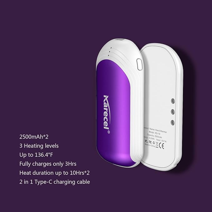 Karecel Hand Warmers Rechargeable 2 Pack, 5000mAh Hot Electric 2 in 1 Hand Warmer Portable Pocket Heater Reusable Handwarmers, Best Electronic Gifts for Men Women Kids, Hunting, Golf, Camping